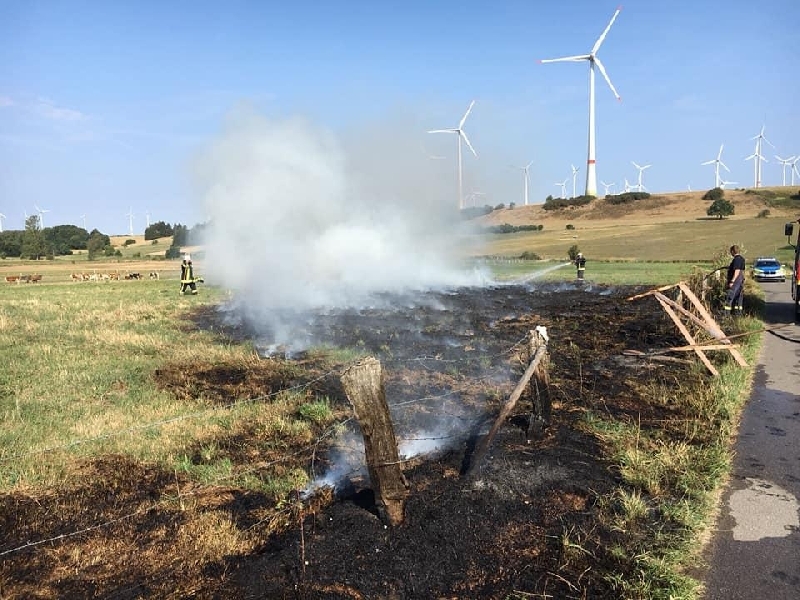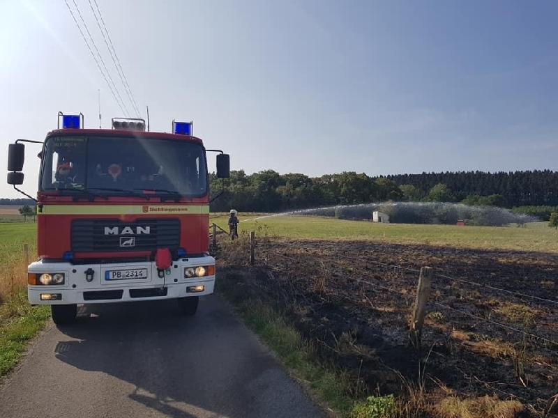 Zu einem Flächebrand einer Wiese wurde der Löschzug Lichtenau am Morgen des 22.8. an die K26 alarmiert. Durch den starken Wind konnte sich das Feuer sehr schnell ausbreiten.
