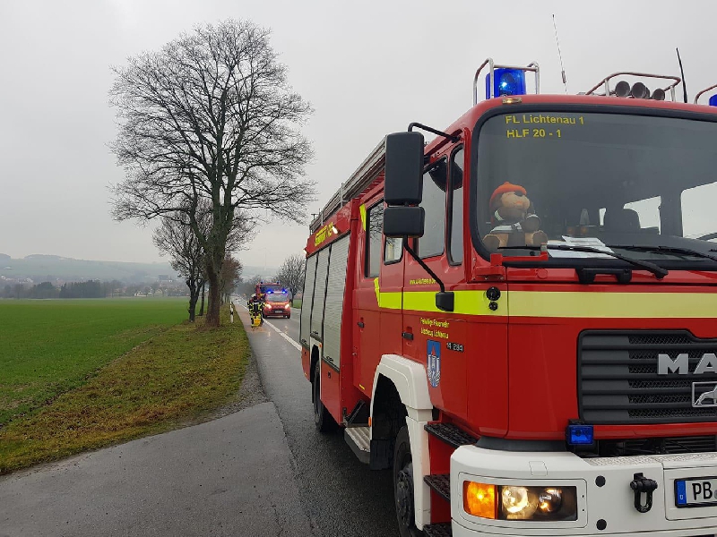 Der Löschzug Lichtenau wurde zur Beseitung einer Ölspur auf die B68 in Richtung Kleinenberg alarmiert.
