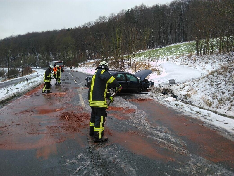 Der Löschzug Lichtenau wurde in den Mittagsstunden auf die L817 in Fahrtrichtung Husen alarmiert. Kurz vor dem Annenberg war es zu einem Alleinunfall eines PKWs gekommen. Der Löschzug Lichtenau betreute die verletzte Person bis zum Eintreffen des Rettungsdienstes und sicherte die Einsatzstelle ab. Aufgrund der Witterung und der Unübersichtlichkeit der Einsatzstelle wurde die Löschgruppe Husen zur Unterstützung bei der Absicherung alarmiert. Auslaufende Betriebsstoffe des Fahrzeugs wurden abgebunden und aufgenommen.
